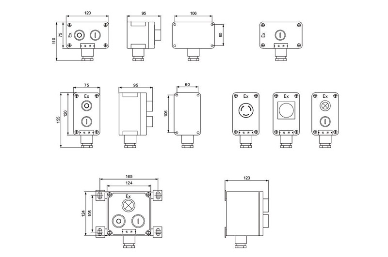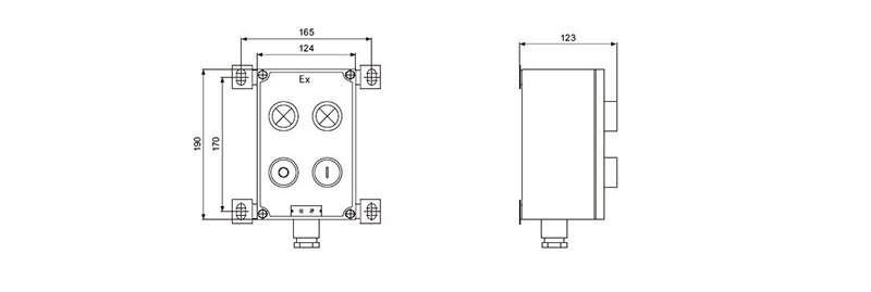 整体为复合型结构,外壳为增安型结构,内装按钮、指示灯、电流表为防爆元件;